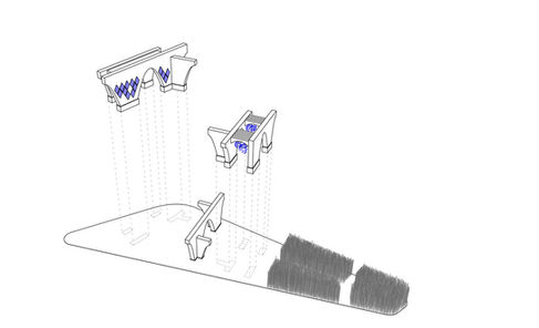 The first section of the demonstrator was constructed in April 2023, with further expansion planned until August 2023. Currently, the installation consists of 19 prefabricated components weighing between 25 and 500 kg. These components integrate a joinery system for inter-component and assembly connections. The structure, assembled in two days, incorporates design-for-disassembly concepts to accommodate its temporary use and future extensions. Computational workflows inform the material articulation and distribution, prioritising material efficiency and structural performance, which are also evaluated through physical testing. As a result, a material gradient is achieved, with earth primarily used at the foundations and willow predominating at the top. Two finishing treatments are used to assess weathering impact, an important challenge for earthen construction.